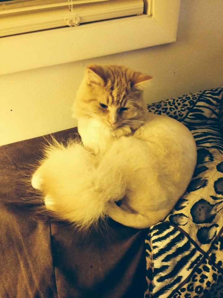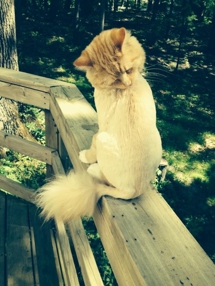 Meanwhile back at the ranch in Upstate New York, USA I’ve had more wild animals traipsing through my backyard than I’ve ever encountered back in South Africa. Possum, raccoon, fox, deer, chipmunk (I’ve never seen a chipmunk till I came here), squirrel, rabbit, skunk… and yes, a lion too!! What, a lion? You may ask. His name is Simba. I even have a picture of him. OK, so that’s my very furry cat who gets a lion cut every summer. 😀 But hey, I have to live up to my reputation as the “wild woman from Africa” (and all that goes with it), right? 😉