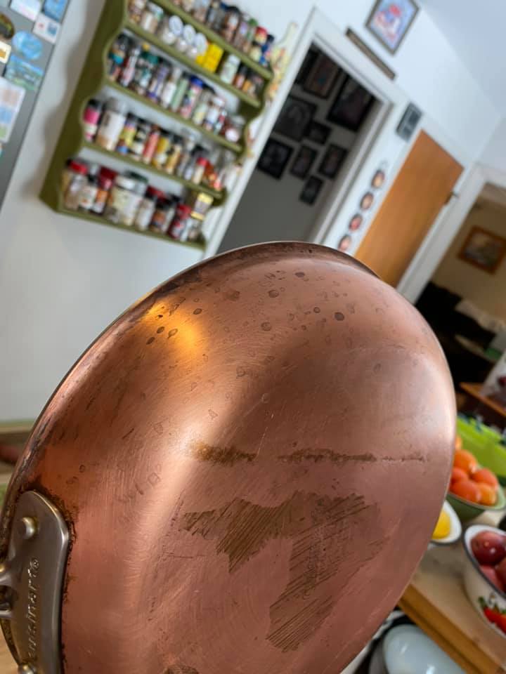 But if your copperware, which you proudly display, doesn’t glow it can be a sorry sight and make you feel a bit embarrassed when you look at it. You’ve spent a lot of time in your kitchen this past year (2020 and some of 2021 without going into detail again why) looking at it, ignoring it, casting sidelong glances at it… You’ve tried tomato sauce, lemon and salt, dishwasher and tartaric acid, and numerous so-called “remedies” not worth a mention. And then you read somewhere, use apple cider vinegar and coarse salt, and you reckon… well, why not give it a try. So I did. And I am impressed with myself, for persevering, for not giving up and for no longer feeling sad when I look at my pots and pans. 🙂
